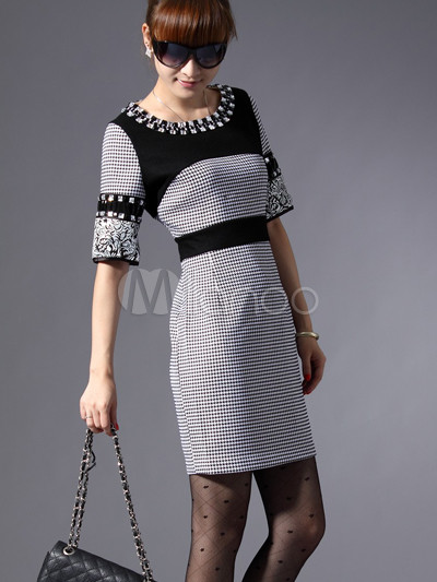 White Euramerican Jacquard Weave Terylene Women S Dress Milanoo Com.